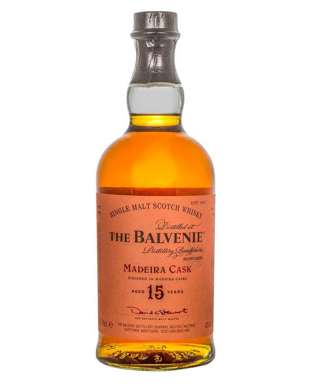 Balvenie 15 Years Old Madeira Cask Finish is an amazing cask finished Balvenie single malt, released in April 2022 as a travel retail exclusive. The whisky initially aged in traditional American oak barrels, lending it warming layers of honey and vanilla. A finish in sweet Madeira casks increased the complexity, bringing notes of fresh peaches, orange zest and hazelnut. Balvenie is the leader of the pack when it comes to cask finishing. In the 1980s, the distillery’s Malt Master David C. Stewart developed the now widely used process, and the first cask finished single malt was introduced in 1983. David Stewart’s many years of experience continue to bring you wonderful releases such as this Balvenie 15 Years Old Madeira Cask Finish.