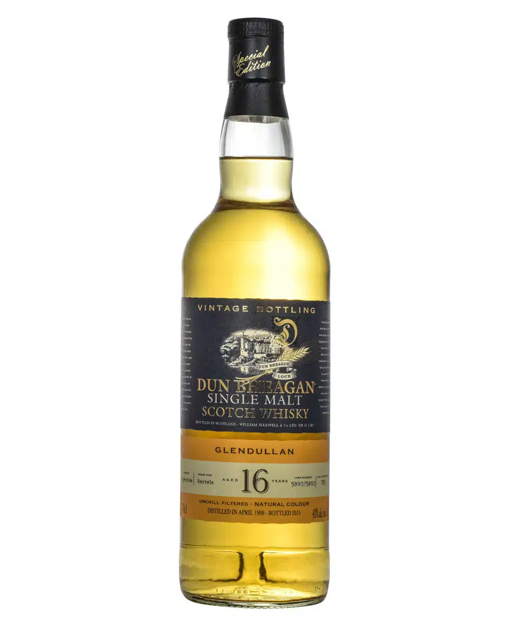 The ancient village of Dun Bheagan on the Isle of Skye has been the seat of Clan MacLeod since the 13th century. Ian Macleod pays homage to this impressive heritage with the Dun Bheagan range, featuring single malts from all over Scotland. Glendullan 16 Years Old Dun Bheagan 1999 was drawn from two bourbon barrels, distilled in April 1999 and bottled in 2015 at 43%. One of 783 bottles.