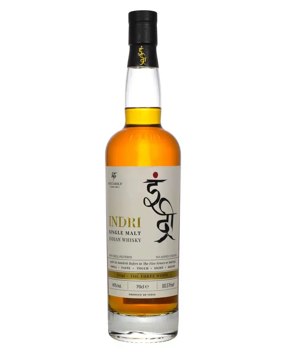 Indri Trini The Three Wood is an exquisite Indian single malt whisky from Piccadily Distilleries, carefully crafted by the distillery’s master distiller and blender. The single malt is made with traditional Indian six-row barley, which is cultivated using old indigenous practices that rely on organic and sustainable methods, and lends a distinctive fruity and floral taste to the spirit. It matured in first-fill bourbon, French wine and Pedro Ximénez sherry casks, each wood type contributing unique flavours without overshadowing the original whisky profile. Indri Trini The Three Wood is gentle and mellow on the nose. Hints of black tea, caramelised pineapple and a whiff of oak come forward, followed by vanilla, honey, spiced tannins and raisins. The palate is elegantly rich, smooth and warming with gentle spice and wood notes, followed by nutty flavours and hints of burnt pineapple, citrus and raisins. Sweet fruity flavours linger on the smooth finish.